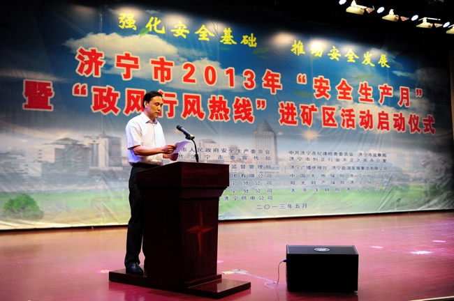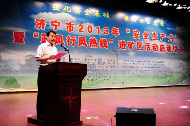 集团公司董事长虢洪增代表济宁能源发展集团在启动仪式上致辞。虢洪增说,今年6月是全国第十二个“安全生产月”。实践证明,持续开展“安全生产月”活动,对于提高人民群众安全素质,夯实安全管理基础,推动经济社会又好又快发展具有十分重要的意义。今年以来,济宁能源发展集团认真贯彻国家安全生产法律法规和上级关于加强安全管理的一系列指示精神,以超常的思维破解安全难题,以有力的措施控制安全风险,以严实的管理夯实安全基础,集团公司安全形势总体稳定,有力地保障了各项工作目标的实现。安全工作只有起点,没有终点;只有更好,没有最好。为此,在“安全生产月”期间,我们将按照市委、市政府的统一部署,围绕2013年“强化安全基础、推动安全发展”活动主题,精心组织,广泛发动,全面贯彻“安全第一、预防为主、综合治理”方针,始终保持安全工作常抓不懈的清醒认识,始终坚持“管理、装备、培训”并重,正视问题,超前防范,狠抓安全基层、基础建设,不断完善安全长效机制。通过扎实开展“安全生产月”活动,形成全员关注安全、严抓安全、确保安全的浓厚氛围,以月促季,以季促年,以安全发展、跨越发展的优异成绩为建设“平安济宁”、打造鲁西科学发展高地做出应有的贡献!