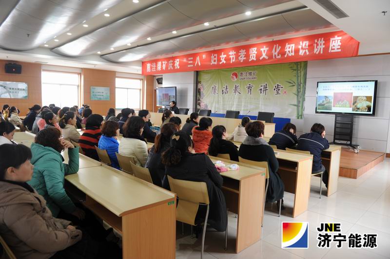36,鹿洼煤矿工会邀请了鱼台县委党校教务科主任卢强开展了庆“三八”妇女节孝贤文化知识讲座。加强对女职工职业道德、家庭美德、社会公德、孝贤文化等方面的教育,进一步提高女职工对家庭、对企业、对社会的责任感,。100多名女职工聆听讲座。