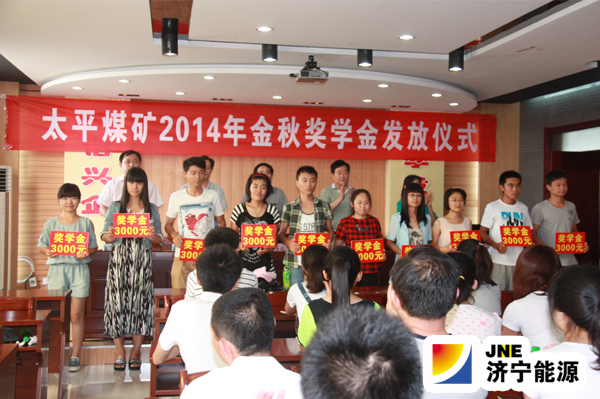 8月28日,太平煤矿2014年度“金秋奖学”金发放仪式在行政办公楼六楼会议室隆重举行。矿纪委书记、工会主席邵作胜主持仪式,矿党委书记汤保民出席仪式并作重要讲话。这标志着该矿2014年度“金秋奖学”活动圆满落幕。此次活动共为2014年考入北京大学、山东大学、西南大学等高校的52名职工子女发放奖学金138000元,为职工子女喜圆大学梦助力,在全矿上下引起强烈反响,受到职工家属普遍好评,擦亮了“金秋奖学”这一工会保障工作的靓品牌,进一步激发了广大职工敬业奉献的积极性,为度危求进传递了正能量。